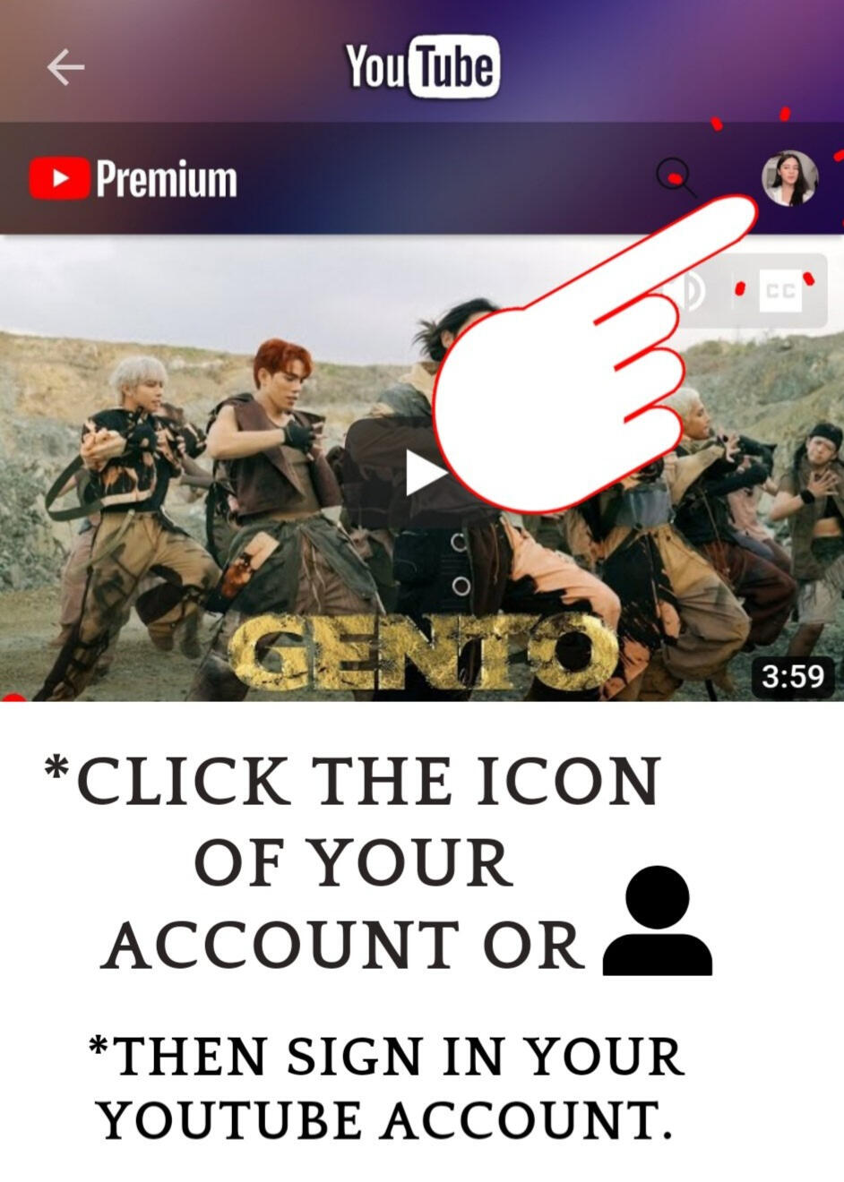 CLICK THE ICON TO SIGN IN TO YOUR YOUTUBE ACCOUNT